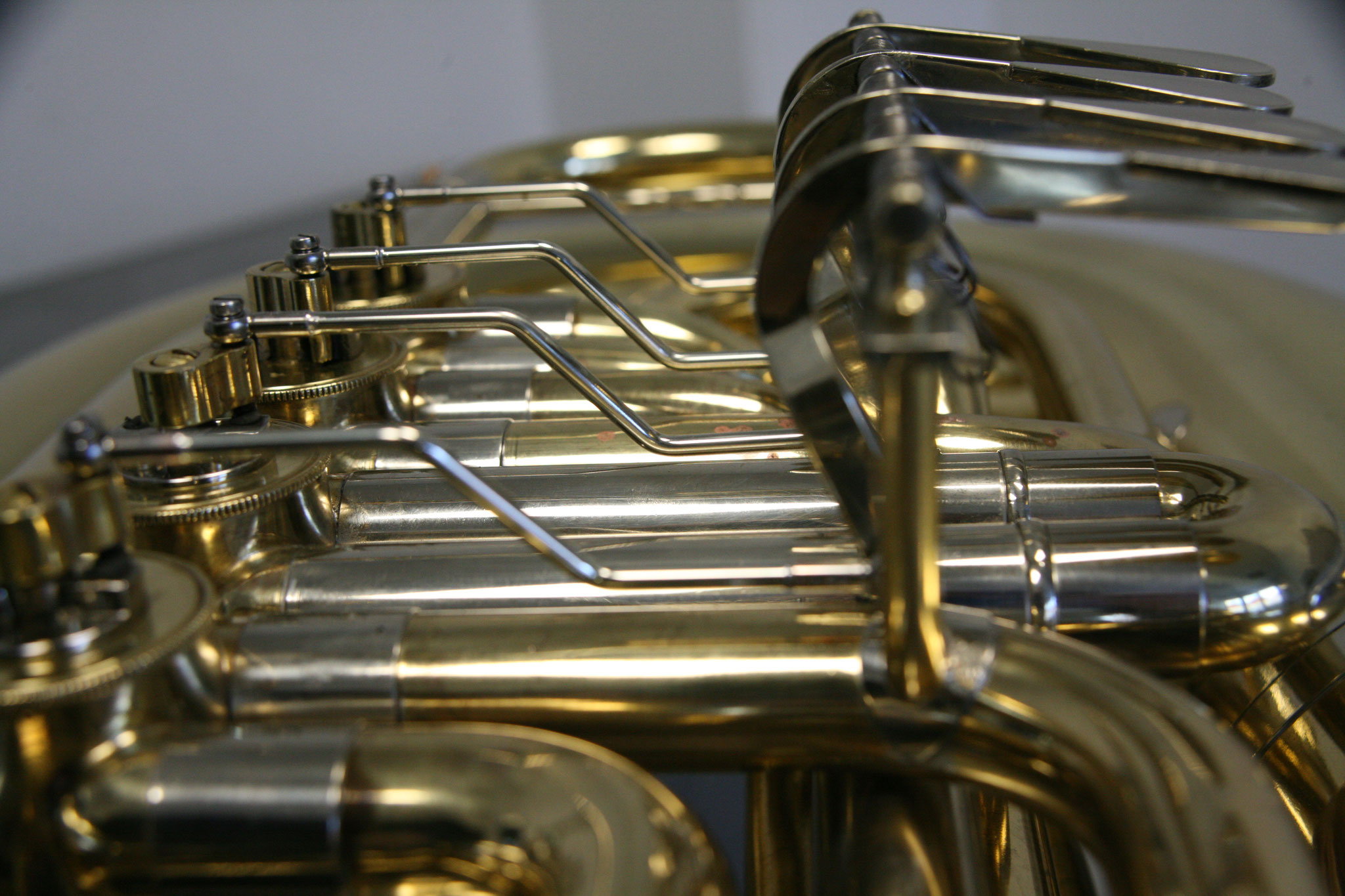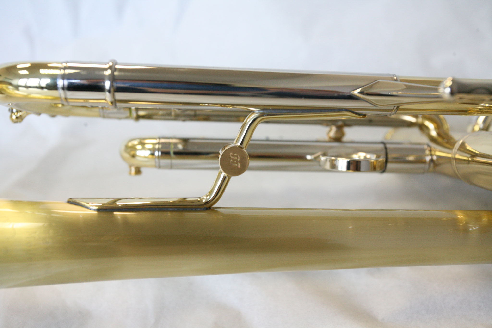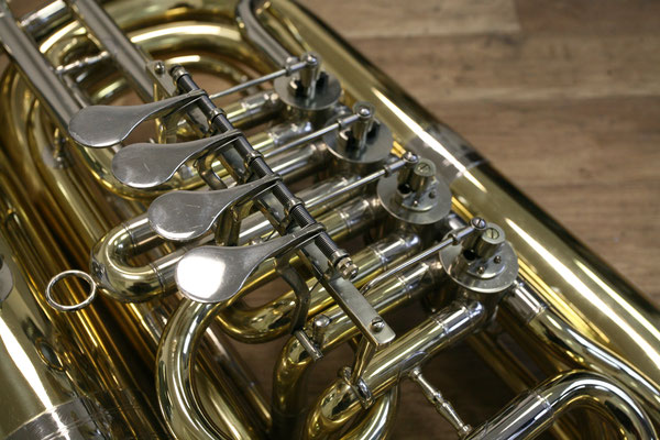 Ausstattung: Bohrung 19mm, Schalldurchmesser 43cm, H 102cm Korpus Messing, Züge Neusilber, 4Ventilig – Mechanik Kreuzgelenk - doppel Minibal inkl. Gig Bag & Mundstück. Das Instrument ist gerbrauch und weist normale Abnutzungsspuren auf.