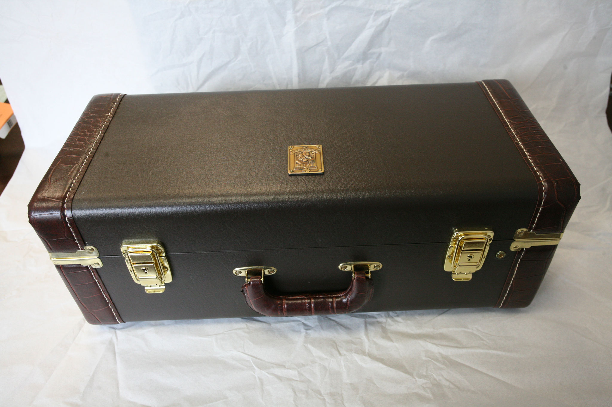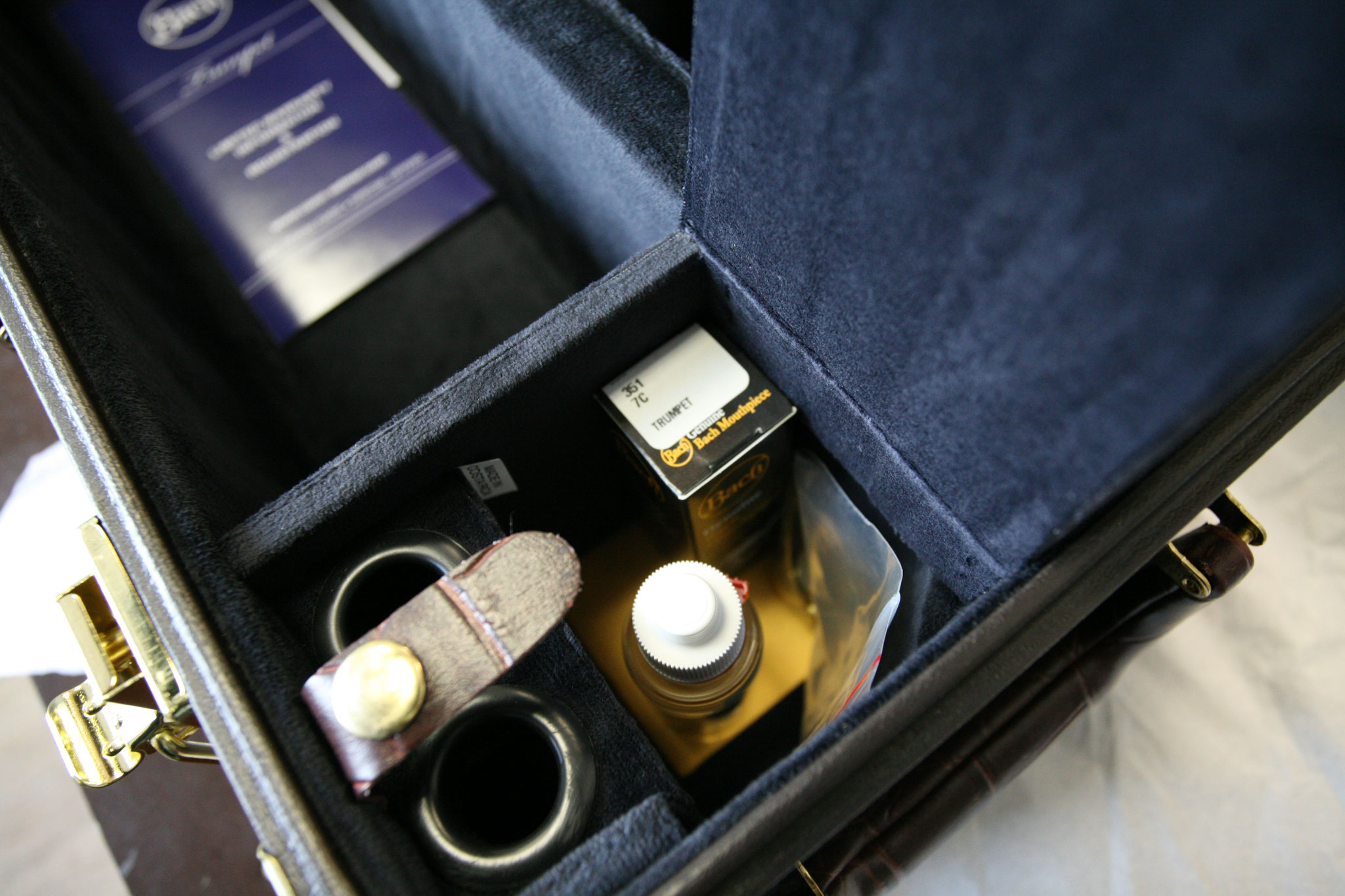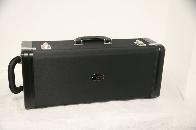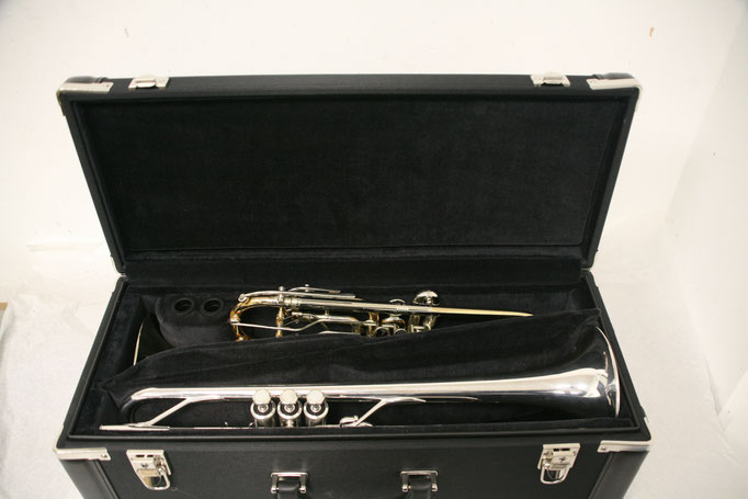 Er ist wie die Yamaha Doppelkoffer, wer Mutig ist und damit leben kann das die Wasserklappe sich in das Innenfutter des Deckels drückt, bekommt auch eine Konzert-Trompete rein, aber auch nicht jede passt rein. Man sollte es in jedem Fall individuell für sich ausprobieren. Mega Qualität und Made in Germany.